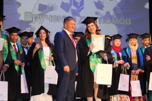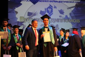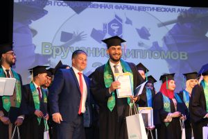 Olga Goncharova thanked the activists of Perm Regional Center of Foreign students for participating in the projects and congratulated them on graduation. Olga Igorevna presented memorable gifts for active participation in the projects of Perm Regional Center of foreign students, including those that were dedicated to the 300th anniversary of Perm, assistance in organizing and participating in sports, creative and cultural events to Mohammed Asbay, Ussama Biya, Iman Darga, Dostonbek Shamsitdinov. This year, the rector of Perm State Pharmaceutical Academy, Vladimir Luzhanin, awarded diplomas to more than forty foreign industry specialists: 40 to citizens from Morocco, 3 from Uzbekistan and one diploma to a student from Kyrgyzstan.